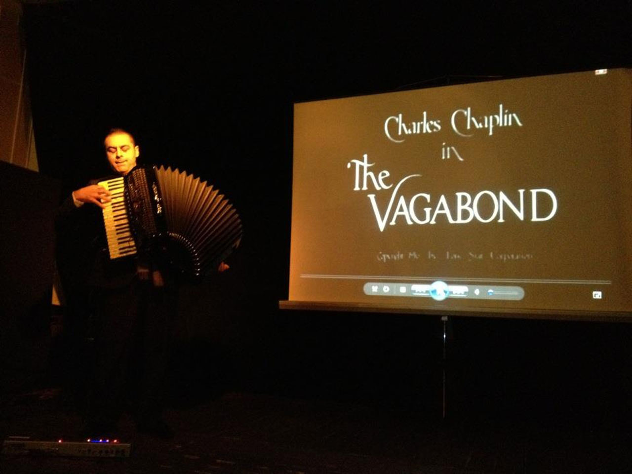 Show-ul care a fost deja prezentat cu succes la câteva Festivaluri Internaționale de Film (fiind invitat ca eveniment adiacent proiecțiilor) utilizează timp de 30 de minute atât proiecția primelor scurt metraje mute (de la realizarea carora au trecut peste 100 de ani!) ale genialului Charlie Chaplin cât și teme muzicale ale aceluiași Charlie Chaplin, Emy Dragoi improvizând jazz-istic la acordeonul personalizat, pe ritmul cinematografic al secvențelor.